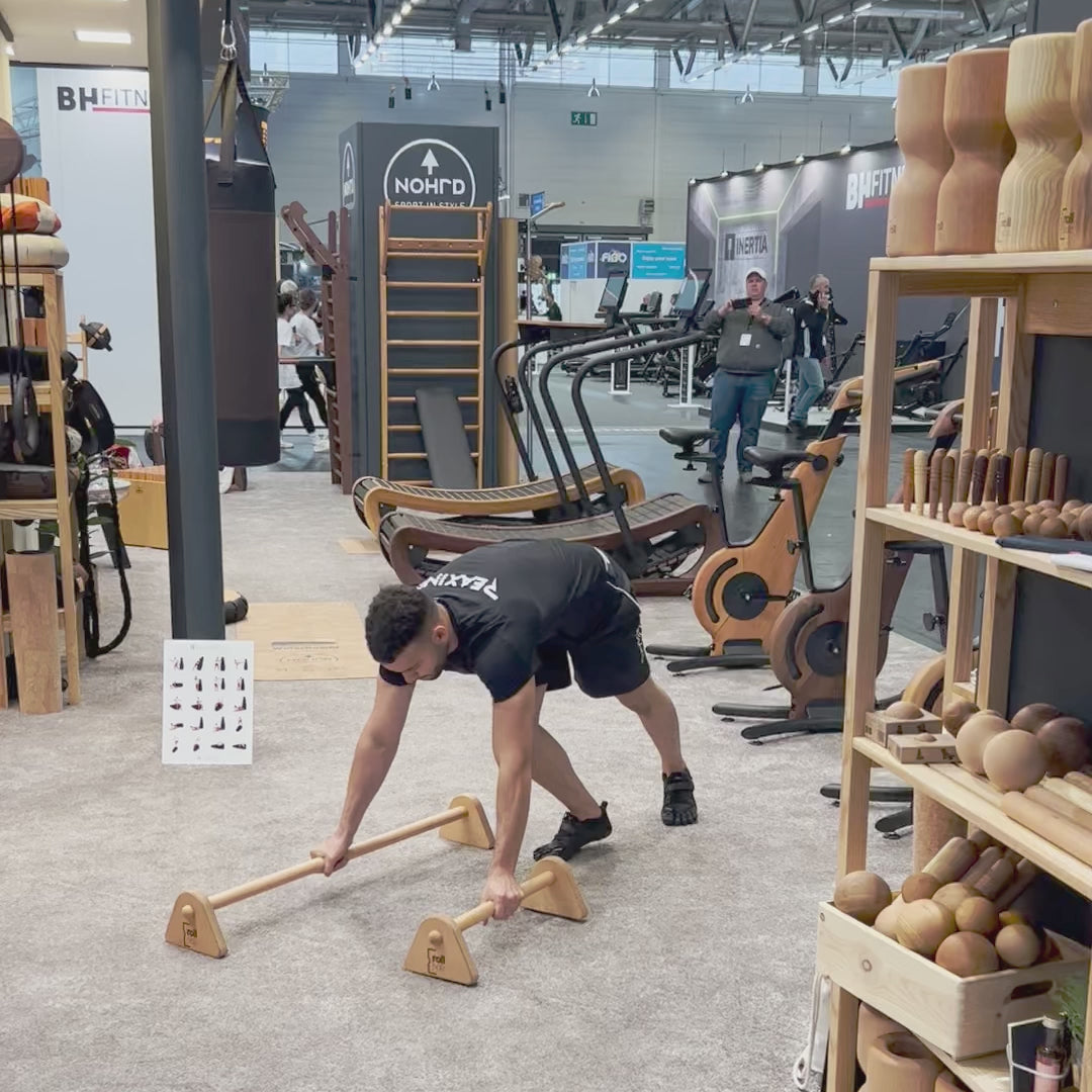 Each pair of parallettes is given its finishing touches in Freiburg and treated with pure linseed oil. No frills, no chemicals – just honest craftsmanship.